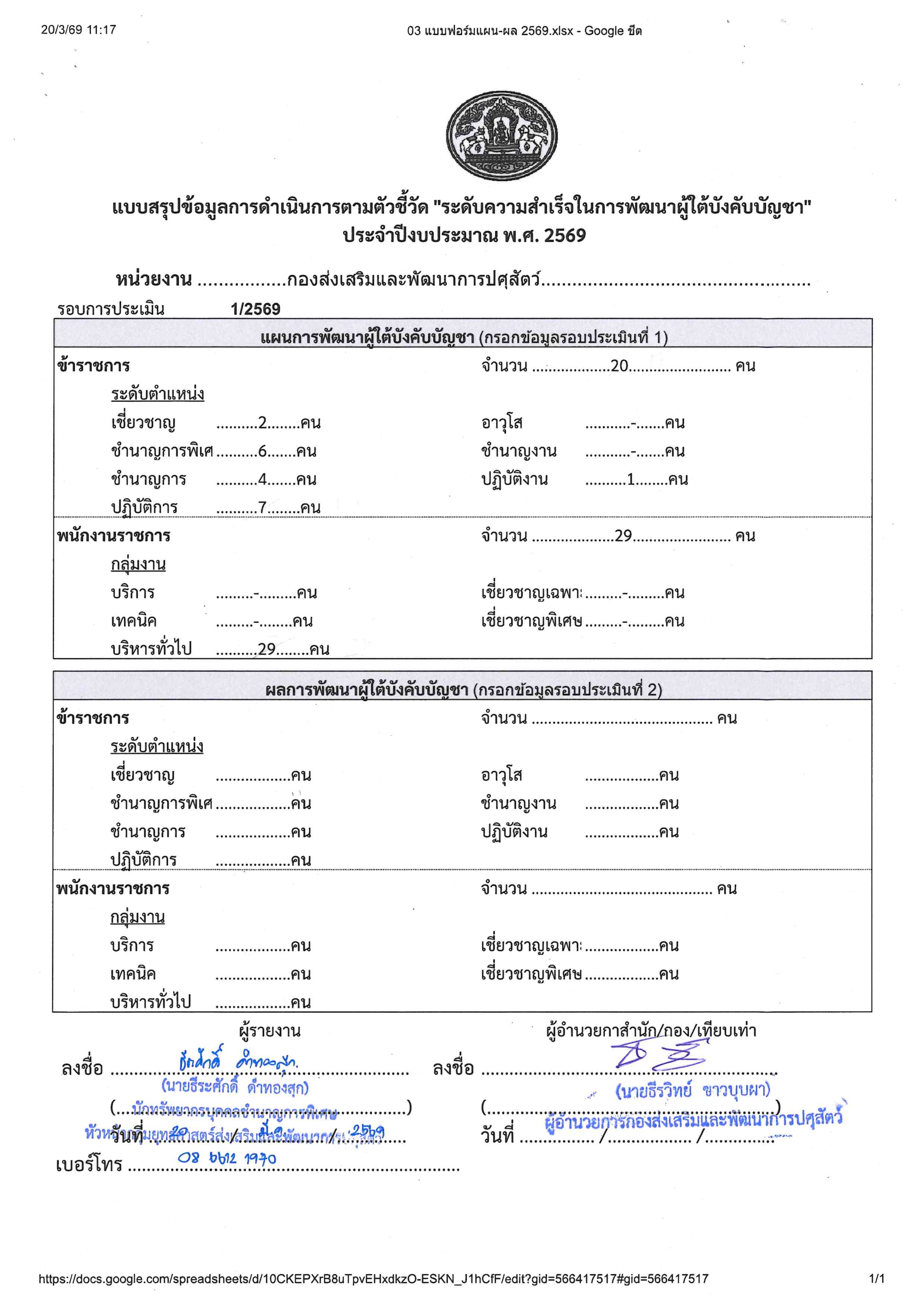 » หนังสือรายงานแผนการพัฒนาบุคลากรรายบุคคล (IDP) ตัวชี้วัด : ระดับความสำเร็จในการพัฒนาผู้ใต้บังคับบัญชา ประจำปีงบประมาณ พ.ศ. 2569 รอบที่ 1