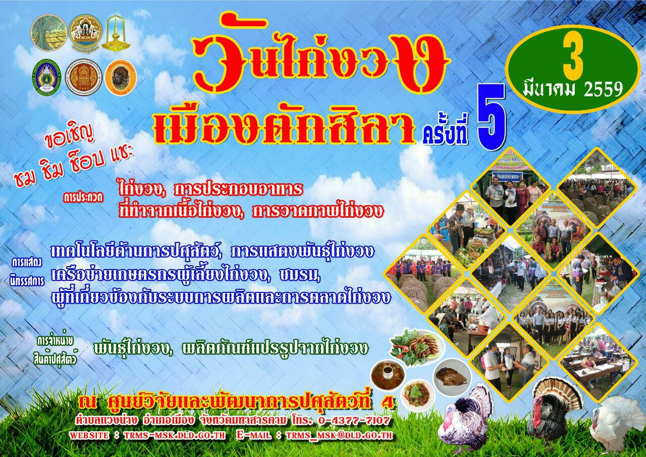 ผู้อำนวยการกองส่งเสริมและพัฒนาการปศุสัตว์ (นายอวยชัย ชัยยุทโธ) เป็นประธานเปิดการฝึกอบรมเชิงปฏิบัติการหลักสูตร "การแปรรูปไก่พื้นเมือง" ตามโครงการพัฒนาเครือข่ายเกษตรกรเลี้ยงไก่พื้นเมือง ภายใต้โครงการอนุรักษ์และพัฒนาการผลิตไก่พื้นเมือง