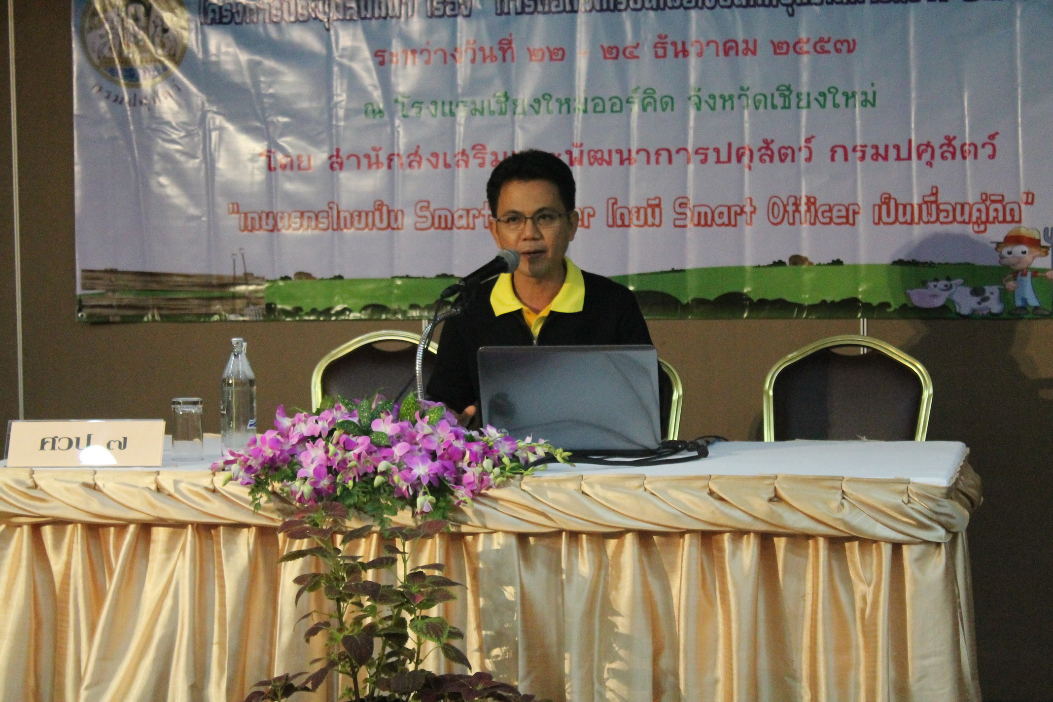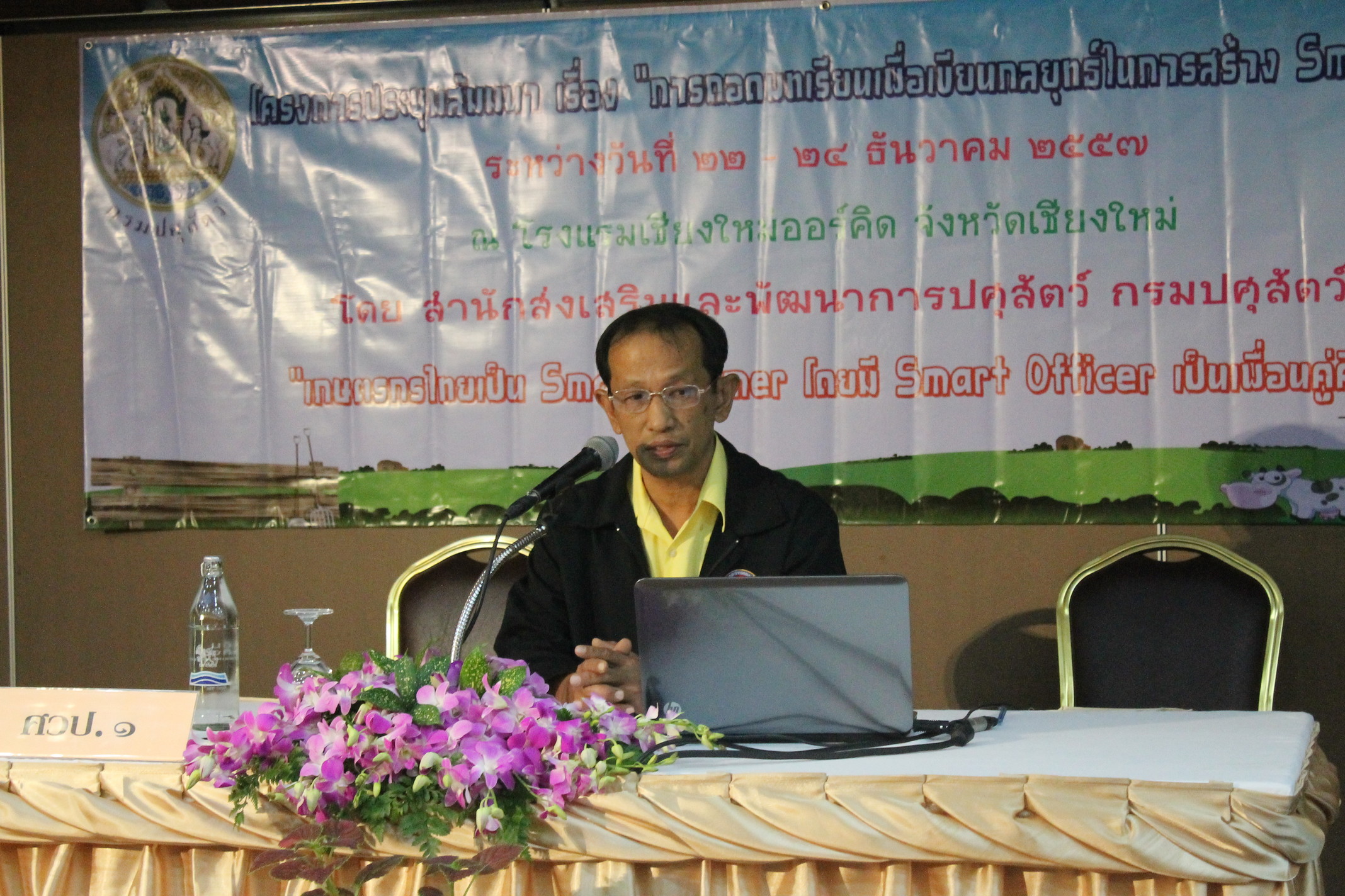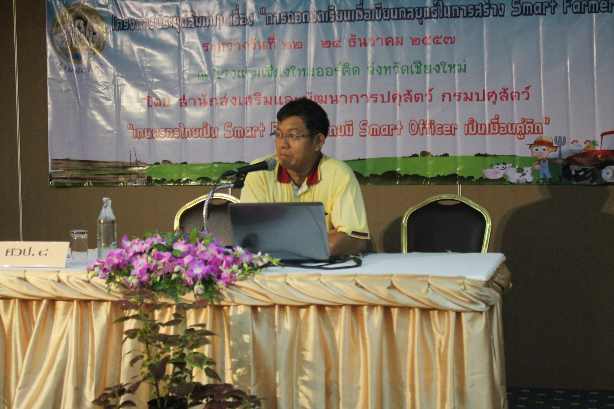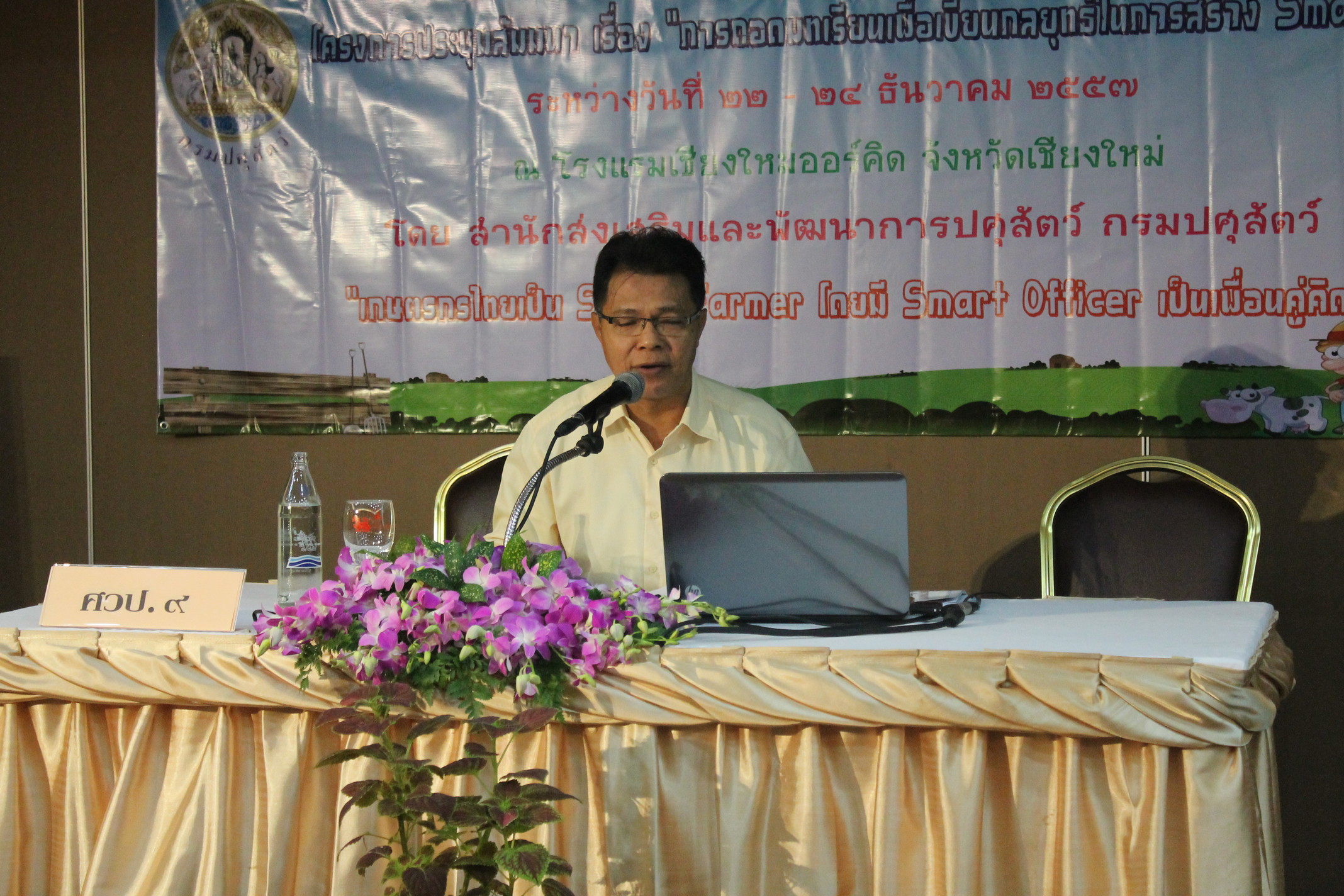 เมื่อวันที่ 22 – 24 ธันวาคม 2558 สำนักส่งเสริมและพัฒนาการปศุสัตว์ ดำเนินการโครงการประชุมสัมมนา เรื่อง “การถอดบทเรียนเพื่อเขียนกลยุทธ์ในการสร้าง Smart Farmer” ณ โรงแรมเชียงใหม่ออร์คิด อำเภอเมือง จังหวัดเชียงใหม่ เพื่อมุ่งเน้นให้เจ้าหน้าที่ส่งเสริมการปศุสัตว์ได้เรียนรู้วิธีการดำเนินงาน สามารถถอดบทเรียนเพื่อเขียนกลยุทธ์ในการสร้าง Smart Farmer พัฒนาเจ้าหน้าที่ให้เป็น Smart Officer ที่สามารถเป็นเพื่อนคู่คิดของ Smart Farmer ได้อย่างมีประสิทธิภาพ และแลกเปลี่ยนประสบการณ์ระหว่างกัน โดยมีการศึกษาดูงานจากสถานประกอบการจริง ทั้งจากฟาร์มเลี้ยงโคนม สถาบันวิจัยและพัฒนาพลังงาน และสหกรณ์โคนม