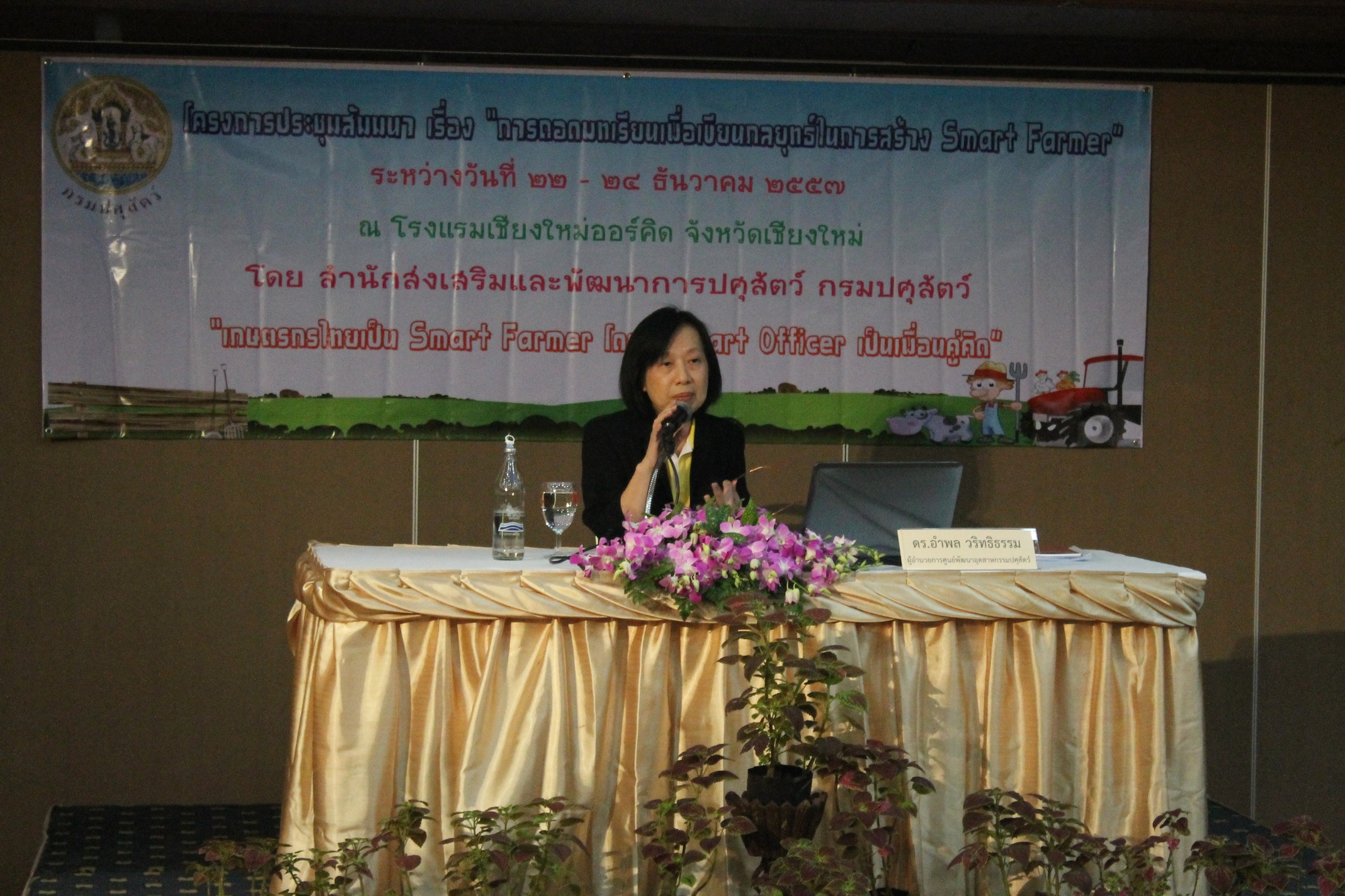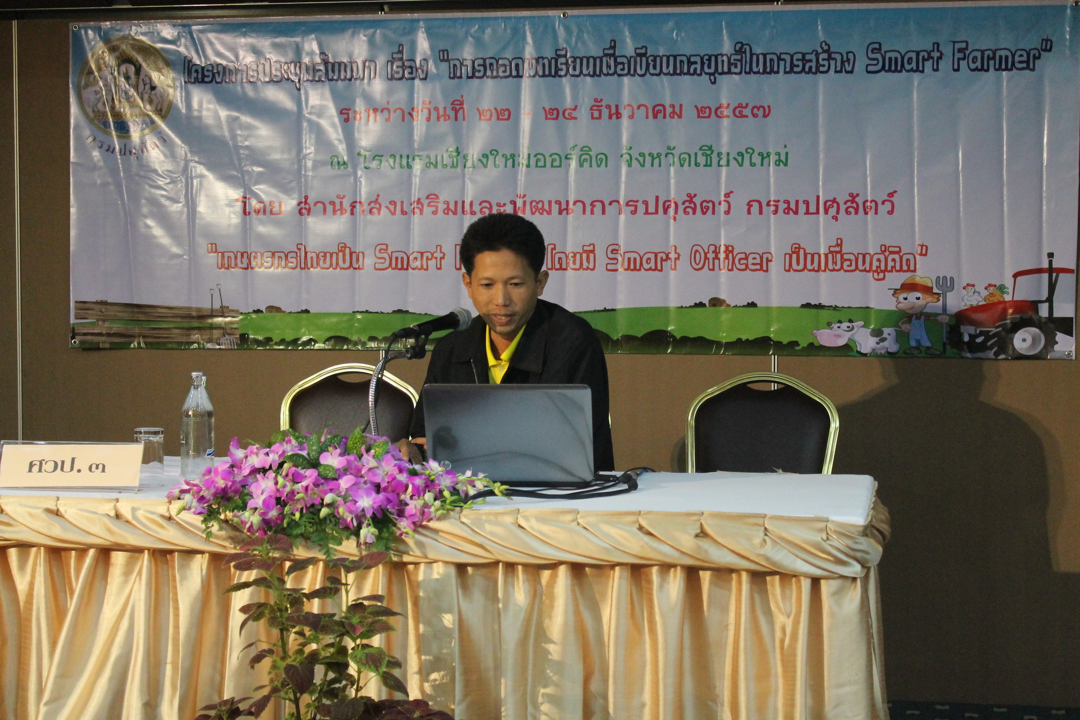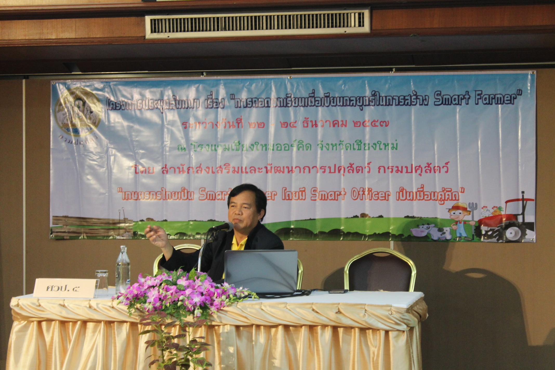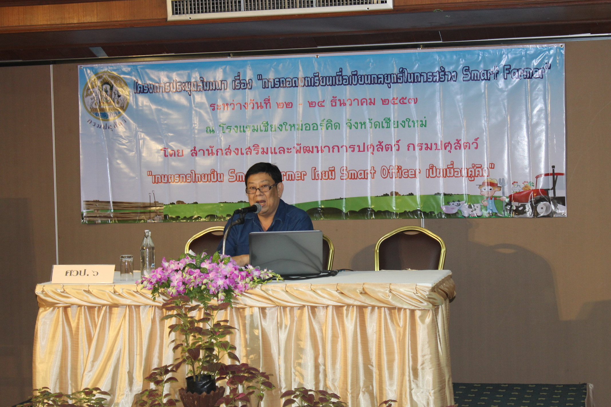 เมื่อวันที่ 22 – 24 ธันวาคม 2558 สำนักส่งเสริมและพัฒนาการปศุสัตว์ ดำเนินการโครงการประชุมสัมมนา เรื่อง “การถอดบทเรียนเพื่อเขียนกลยุทธ์ในการสร้าง Smart Farmer” ณ โรงแรมเชียงใหม่ออร์คิด อำเภอเมือง จังหวัดเชียงใหม่ เพื่อมุ่งเน้นให้เจ้าหน้าที่ส่งเสริมการปศุสัตว์ได้เรียนรู้วิธีการดำเนินงาน สามารถถอดบทเรียนเพื่อเขียนกลยุทธ์ในการสร้าง Smart Farmer พัฒนาเจ้าหน้าที่ให้เป็น Smart Officer ที่สามารถเป็นเพื่อนคู่คิดของ Smart Farmer ได้อย่างมีประสิทธิภาพ และแลกเปลี่ยนประสบการณ์ระหว่างกัน โดยมีการศึกษาดูงานจากสถานประกอบการจริง ทั้งจากฟาร์มเลี้ยงโคนม สถาบันวิจัยและพัฒนาพลังงาน และสหกรณ์โคนม
