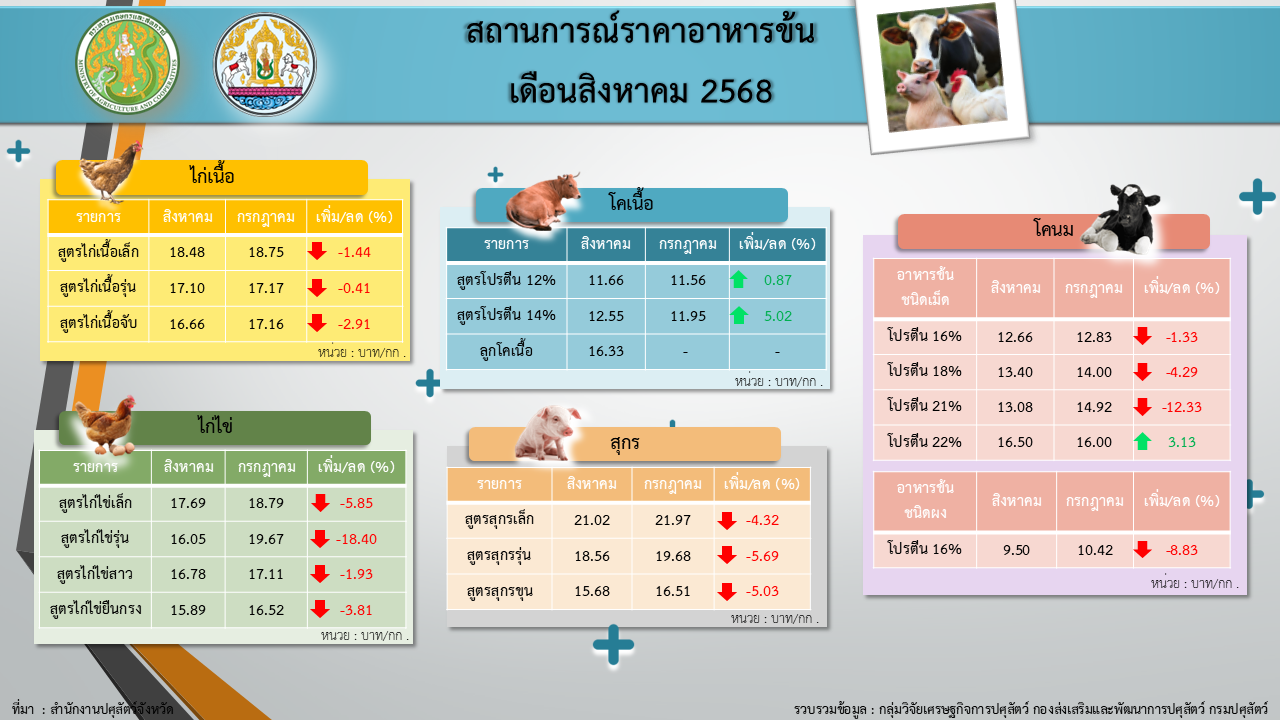 ข้อมูลโดย : กลุ่มวิจัยเศรษฐกิจปศุสัตว์ สำนักส่งเสริมและพัฒนาการปศุสัตว์ โทร. 02 653 4444 ต่อ 3341